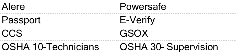Different systems have different requirements for drug testing and safety training. These standards provide us with a wonderful opportunity to improve our own programs and have led us to adhere to the most stringent safety and procedure standards.